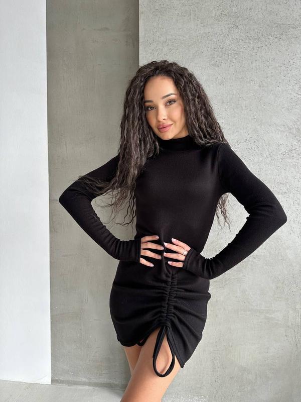 Теплое платье из ангоры с рукавами по фигуре с затяжкой на завязках мини короткая