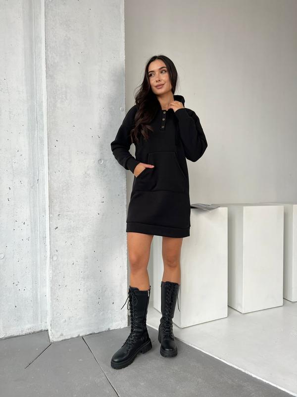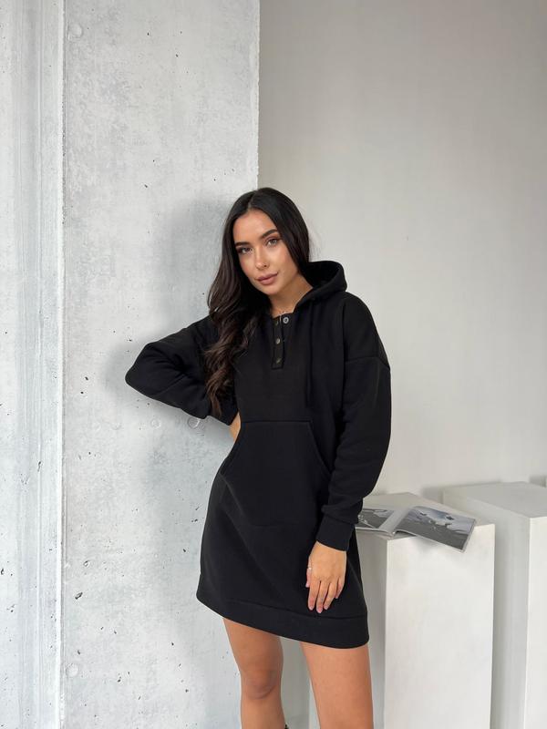 Платье-туникаТкань трехнитка на флисеРазмеры: 1(42-46), 2(48-52)Цена 730 грн. Цвета: фуме, черный, светлый джинс, мокко