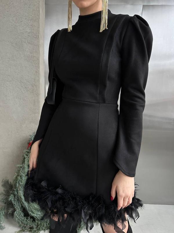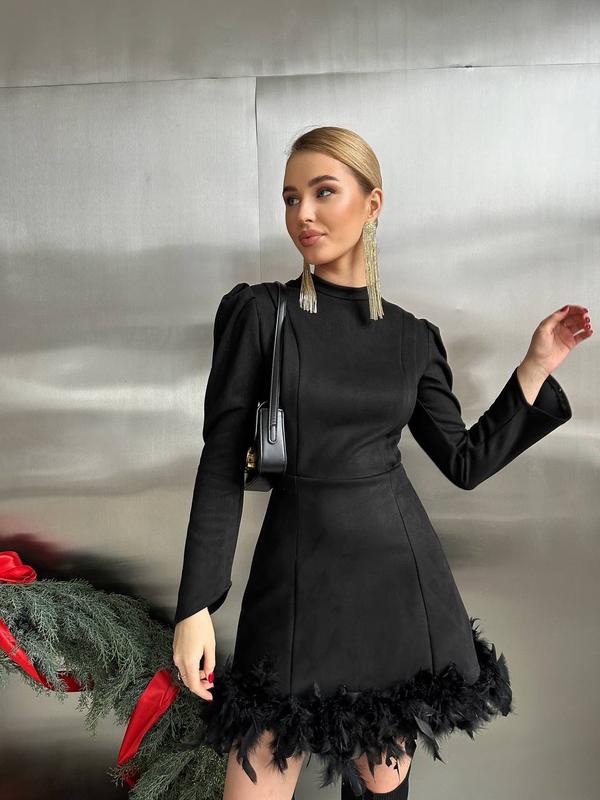 Сукня 💥мод.135ткань - замш на дайвинге+ Лебединые перьяразмеры: 42-44, 46-48Цвет: черный😍Цена: 850 грн