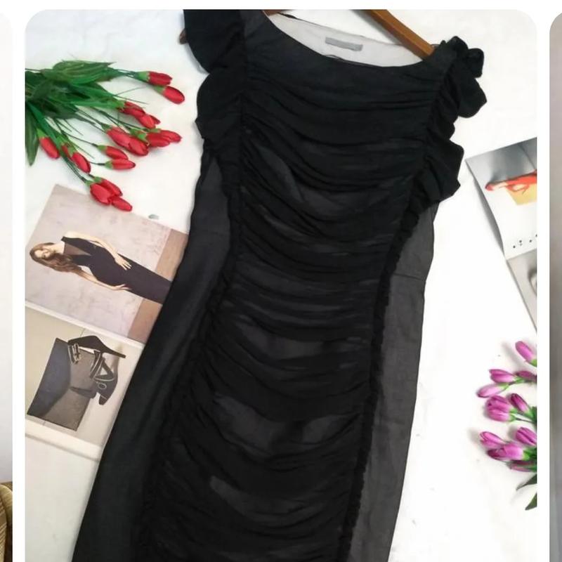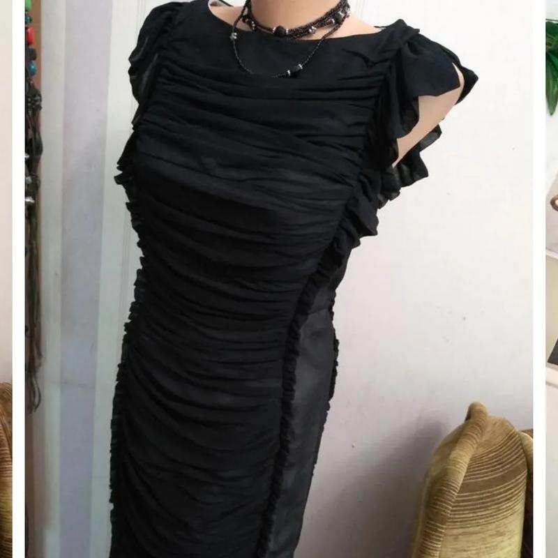 Ткань очень интересная, верх паутинка черная мягкая, низ подклад коттонПлатье вечернее не тонкоебез дефектов, как новое