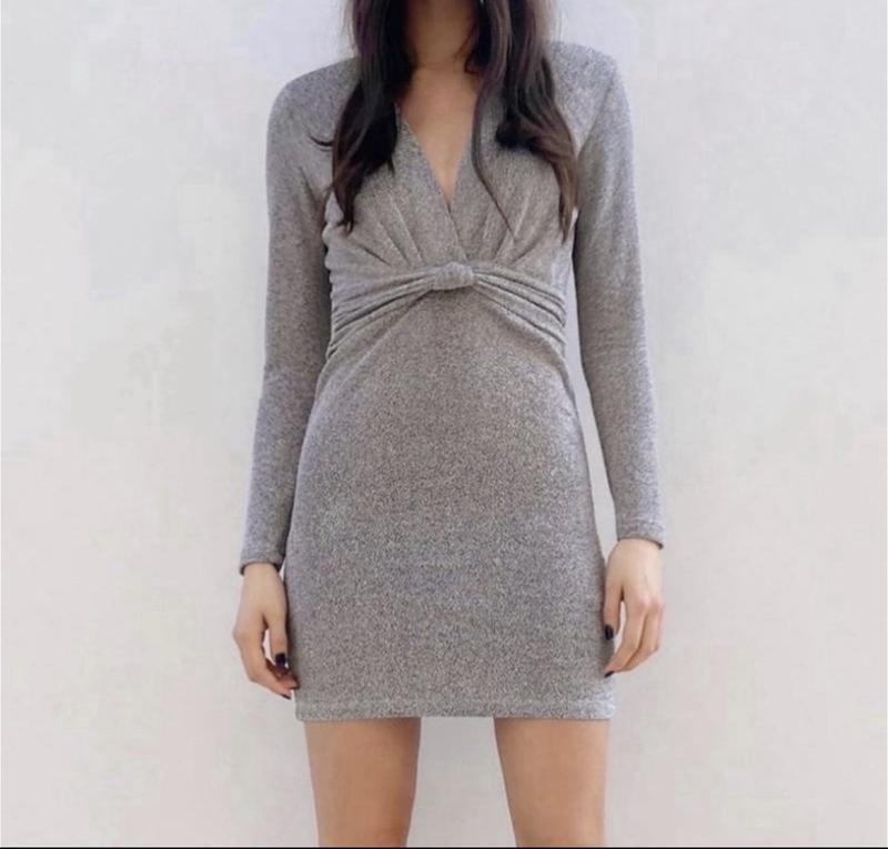 Серое бандажное платье от zara