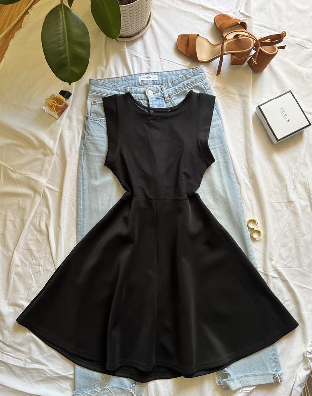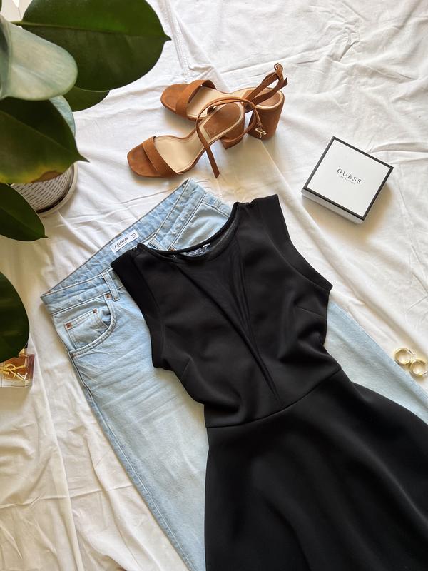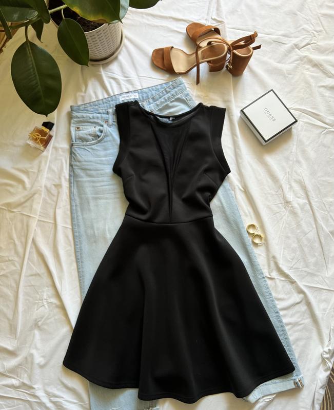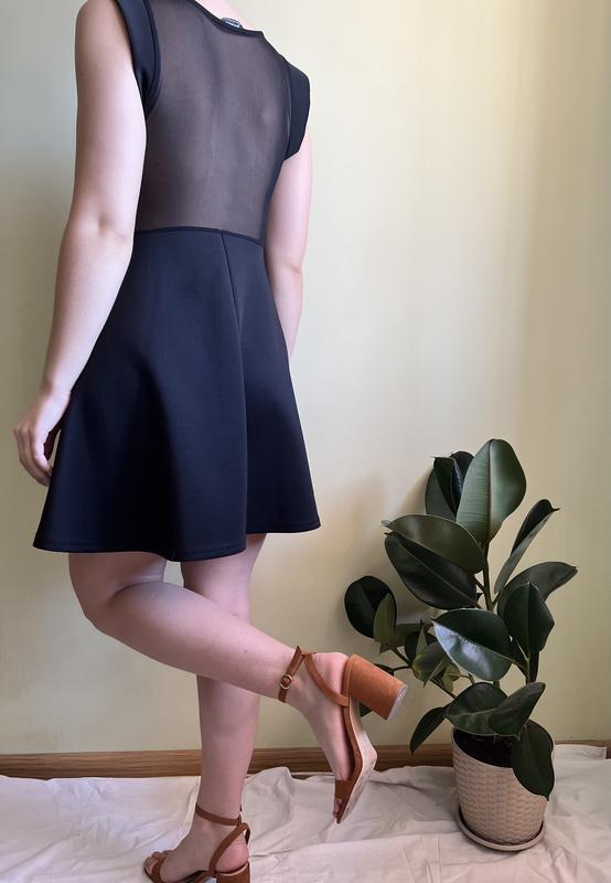 Черное мини платье с красивым декольте и спинкой из сеточки 🖤Стан - идеальный Размер МИз плотного эластичного материала Бирка со складом срезанная