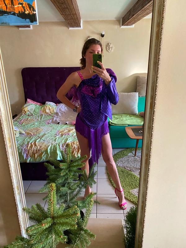 Стильное платье расшитое камнями и стразами💜Для бальных танцев💫 Состояние красивоеРазмер М/L