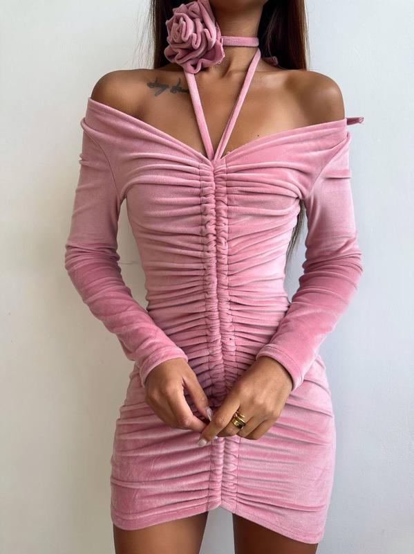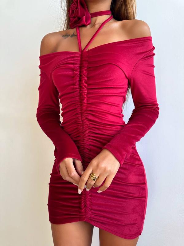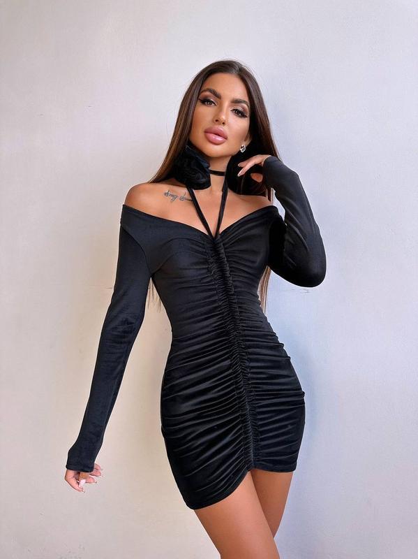 Оксамитова сукня із зав'язкою на шию з трояндою▫️тканина: оксамит ▫️розмір: Розмір S та М