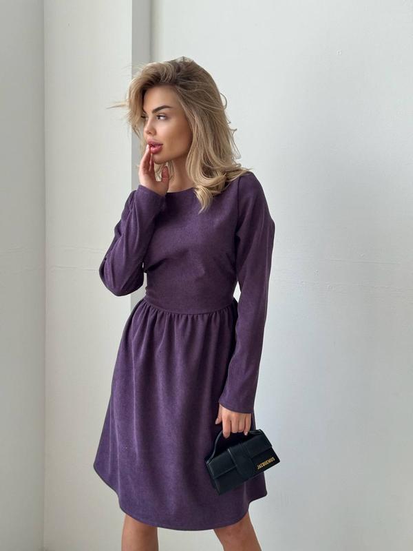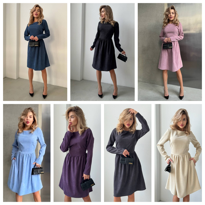 Платье женское короткое по колено из микровельвета 42-48 голубое, пудра (светло-розовое), таш (кремовое), графит (темно-серое), черное, сливовое, джинс (синее)