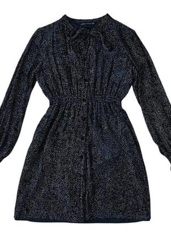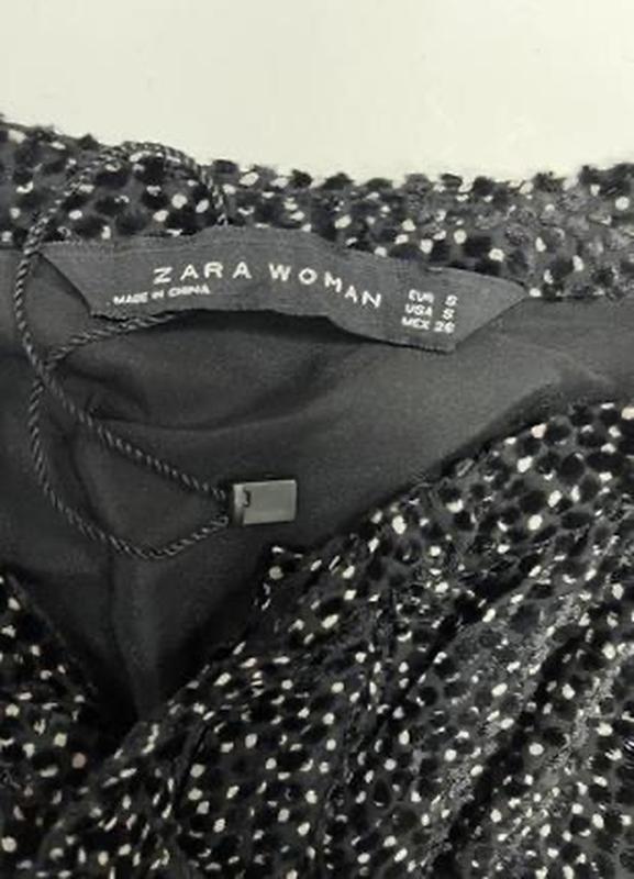 Короткое платье Zara с белым и черным бархатом. Длинные рукава с воланами. Бант, который можно завязать на шее или оставить несвязанным.