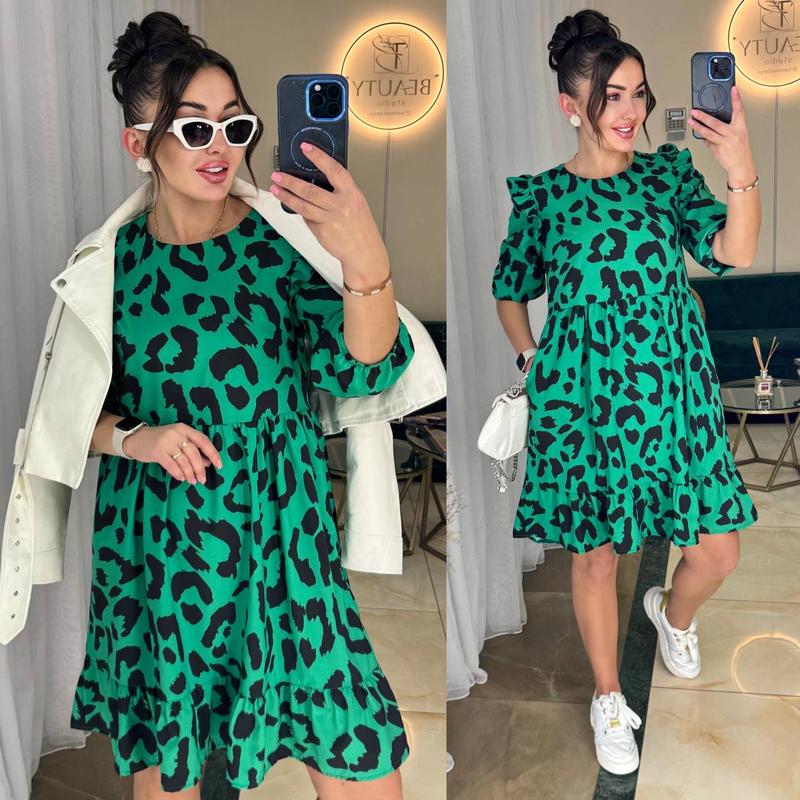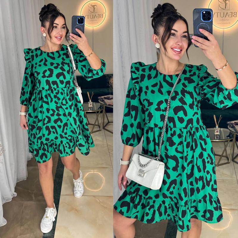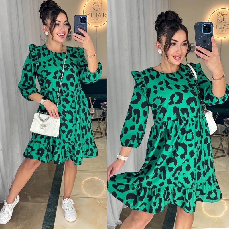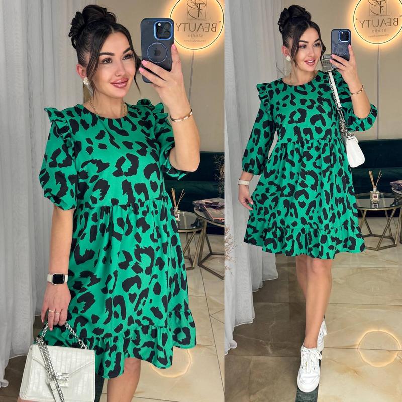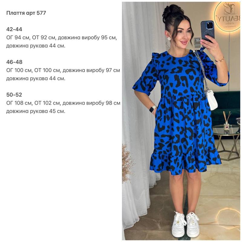 Сукня вільного крою, рукав 3/4 на резиночці, на плечах оздоблення рюші