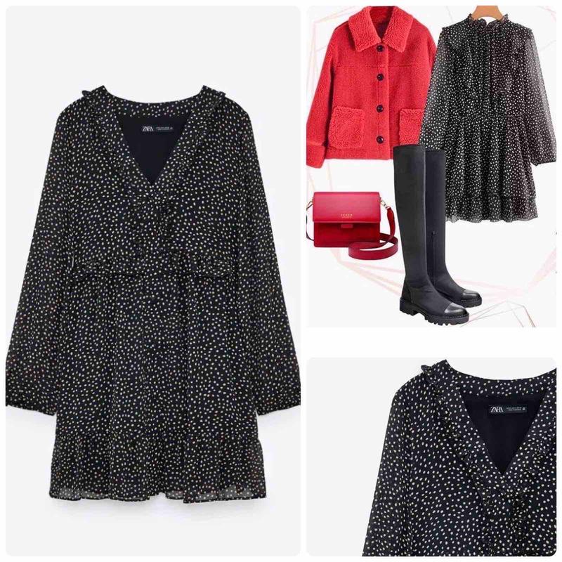 New collection! роскошное черное платье в горох от zara.