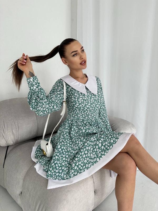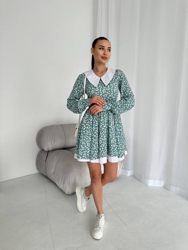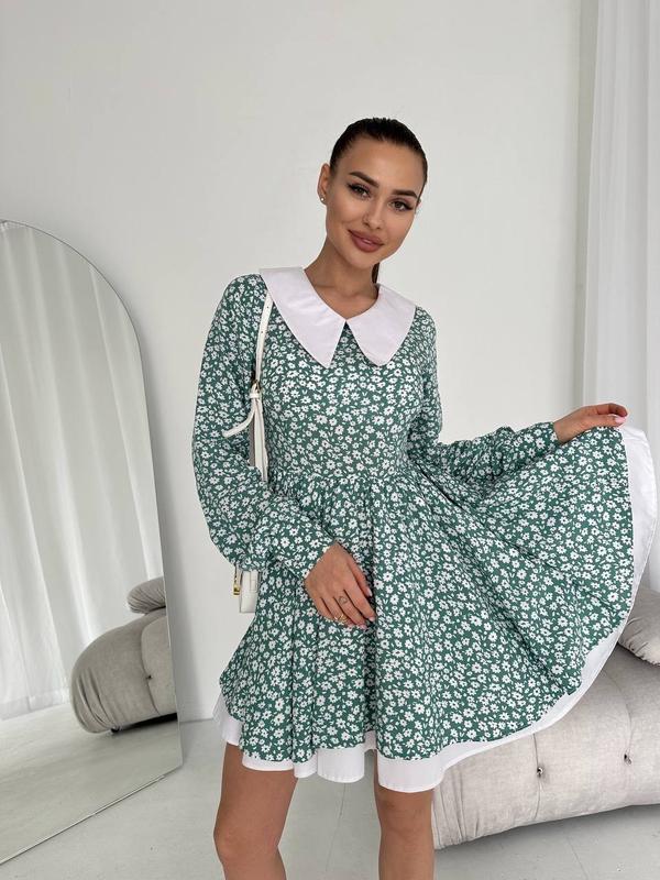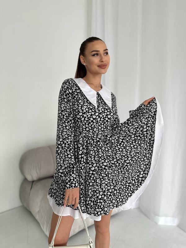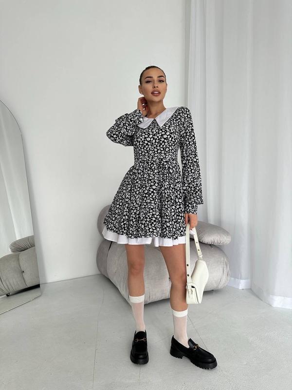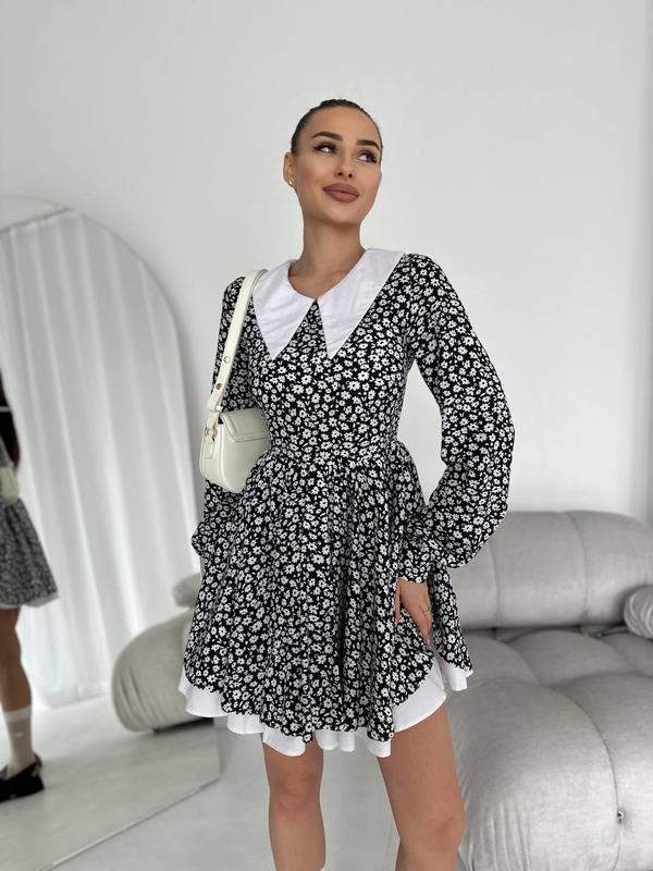 Эффектное и нарядное платье мини с акцентом в виде белого воротника. Это платье подчеркнет вашу фигуру и сделает ваш образ незабываемым.