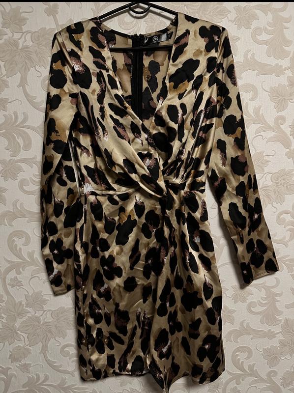 Блестящее платье в пайетки анималистический принт леопардовый от zara
