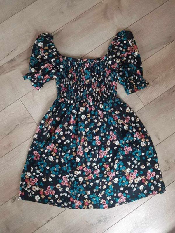 Очаровательное платье в цветочки, с сборкой, новенькое. Если хотите замеры, с радостью сделает.