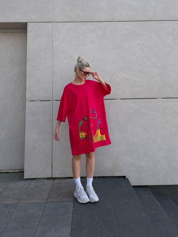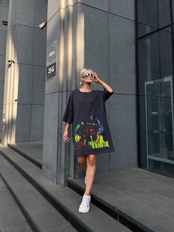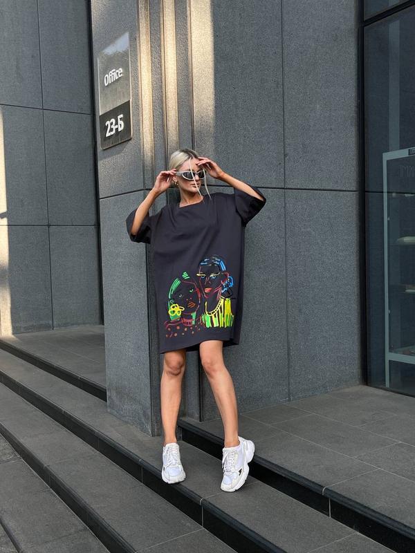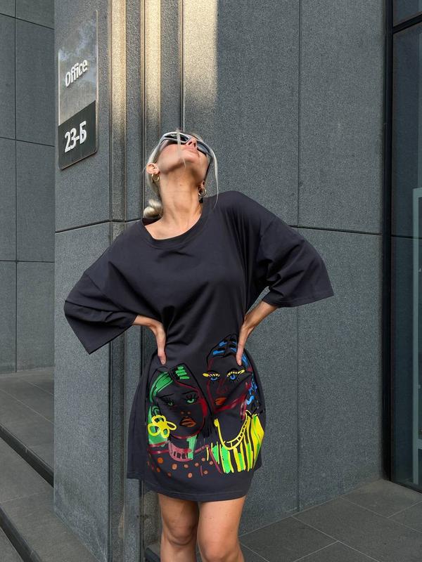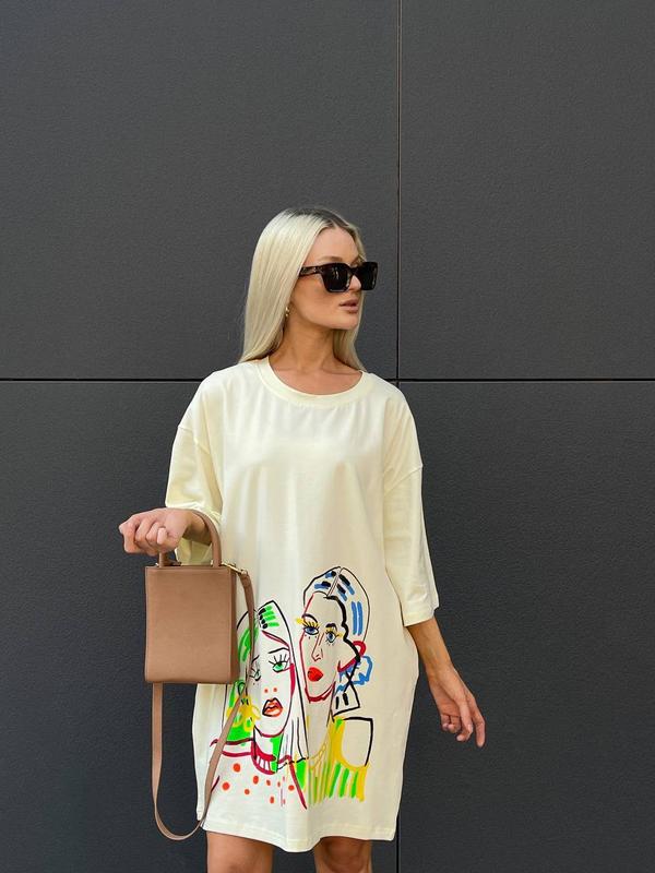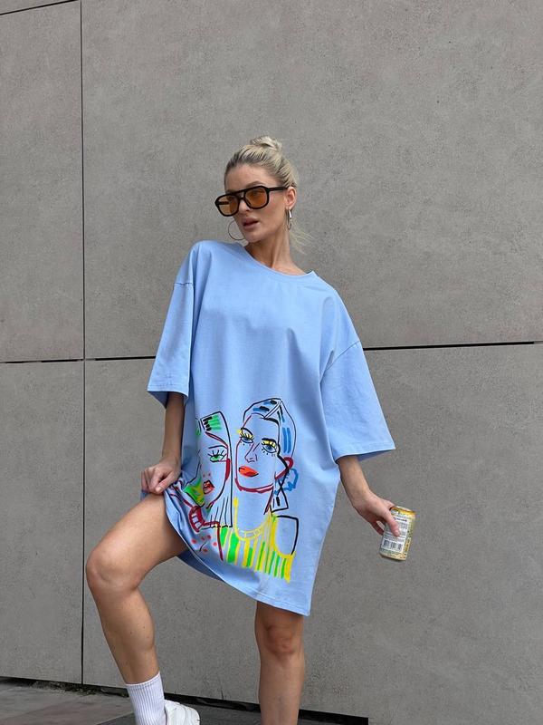 Футболка - платье Цена 790 грн▫️Модель 389▫️Ткань: Турецкий кулир (100% хлопок)▫️Цвет: кремовый, лайм, фисташка, голубой, графит, малинаРазмер: универсальный 42-46