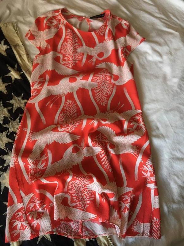 Легкая, приятная ткань из вискозы Простой лаконичный силуэт Короткие рукава-крылышки Застежка на пуговицу сзади Длина 84 см длина рукава от горловины 22 см ПОГ 44 см ПОТ 45 см ПОБ 50 см ПО низу 64 см