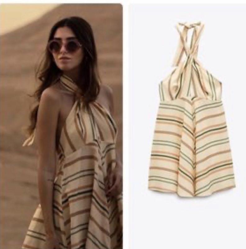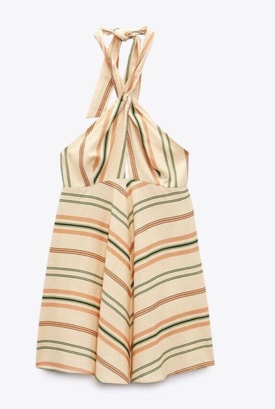 Платье Zara из льна. Стиль халтер с галстуком-бантом. Потайная молния в заднем шве.Нове ! Есть бумажная бирка