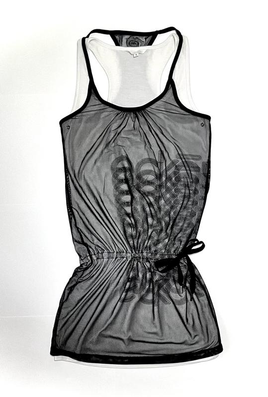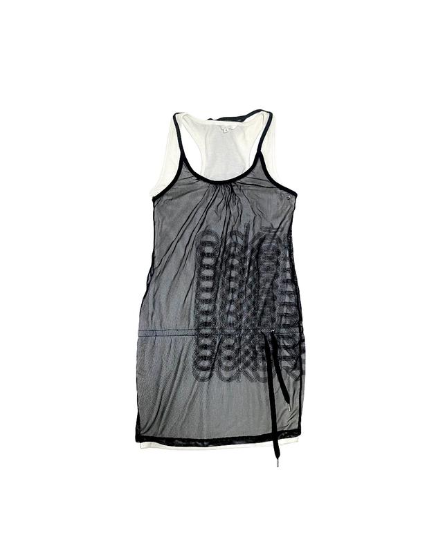 - Оригинальное женское прозрачное платье-майка в черную сеточку с подкладкой белого цвета фирмы eckōred (ecko unltd) в идеальном состоянии