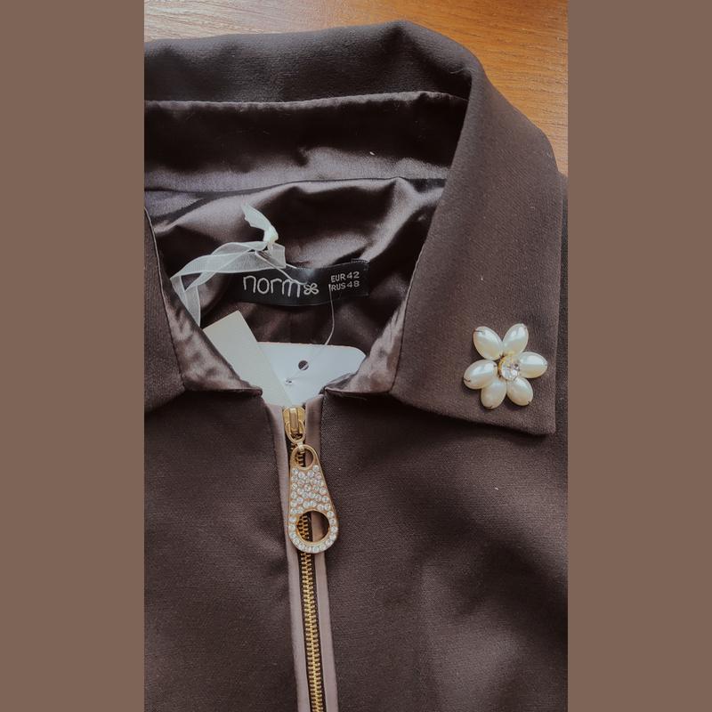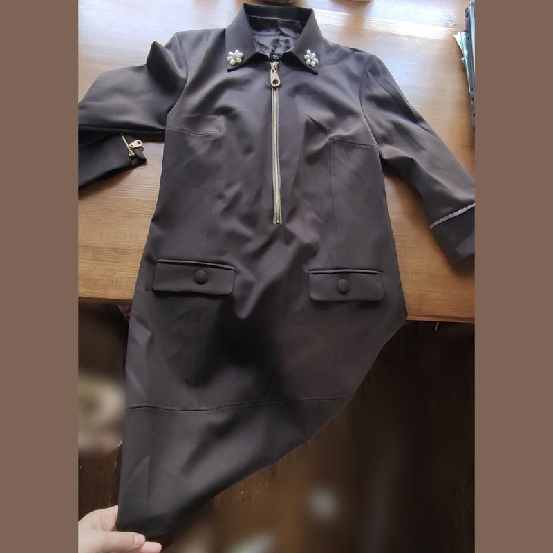 Красива сукня😍Шоколадного цвета из плотной костюмной ткани, держит форму. Длина ориентировано до колена. Немного тянется. Размер хс-с