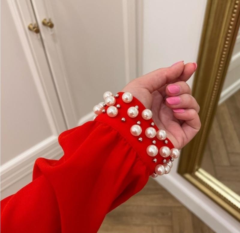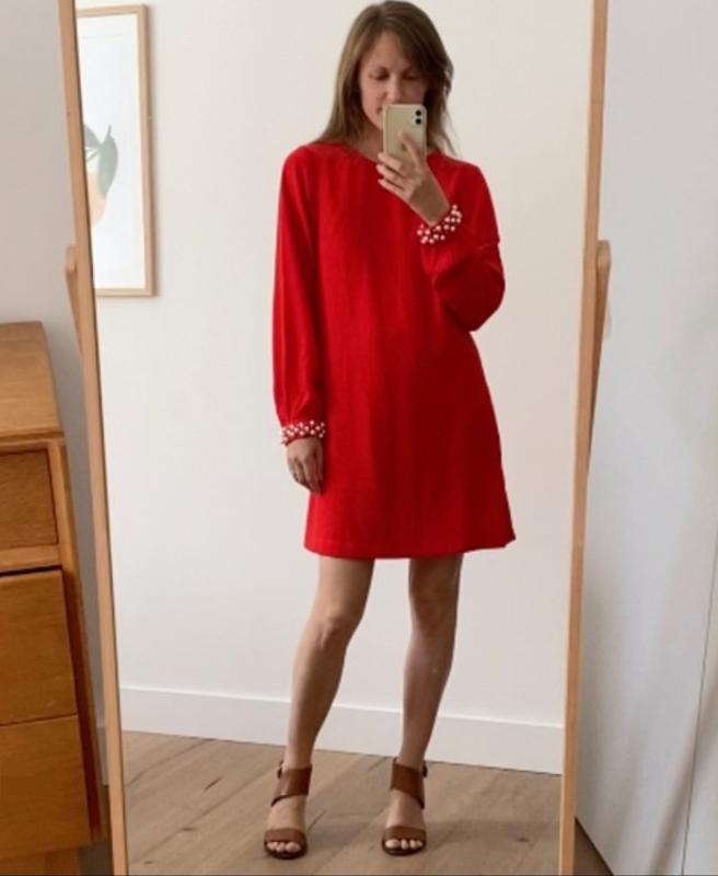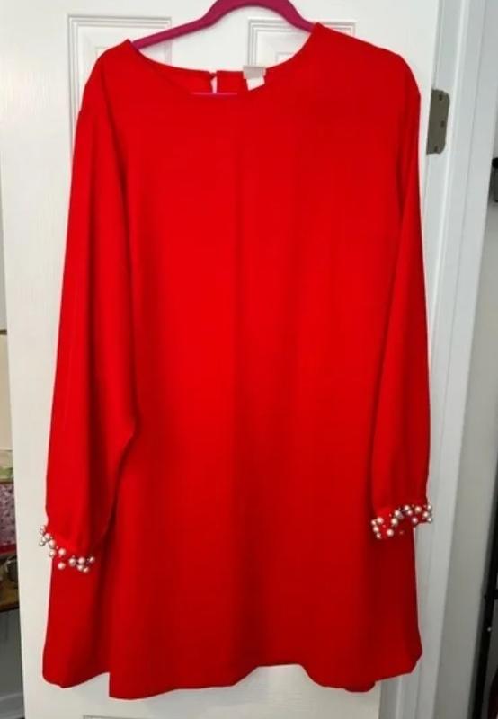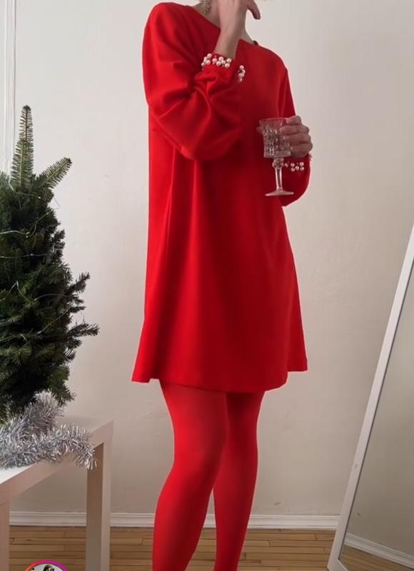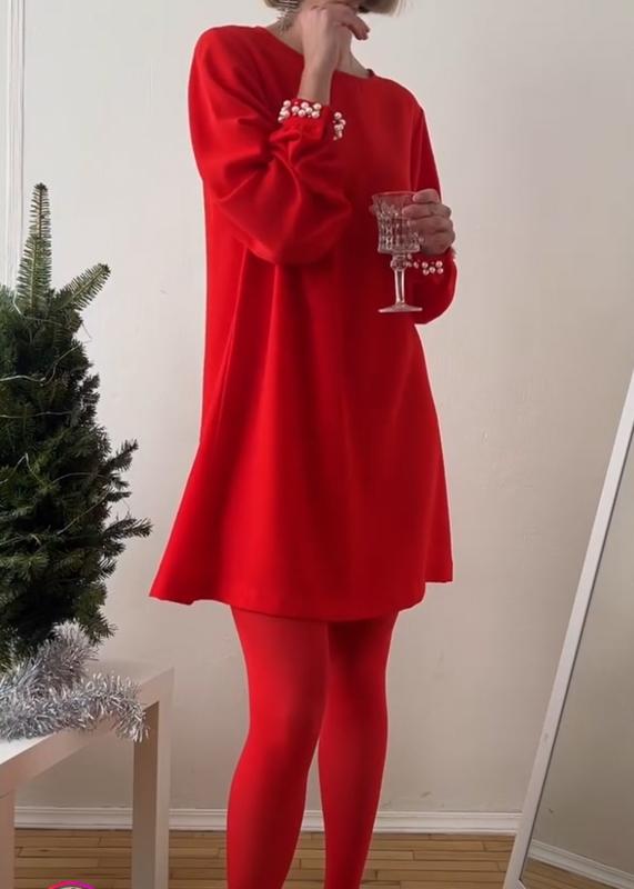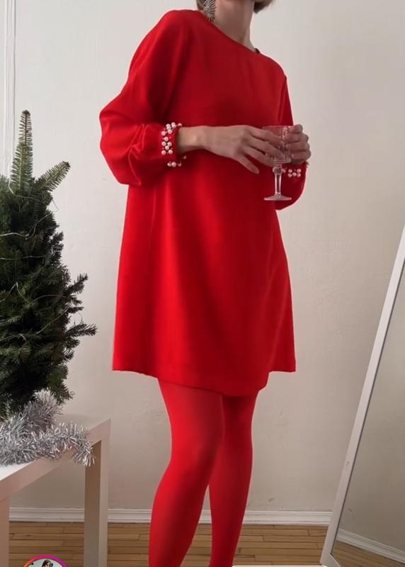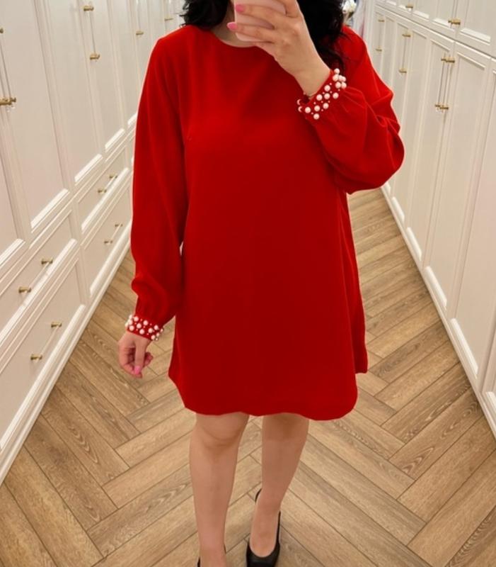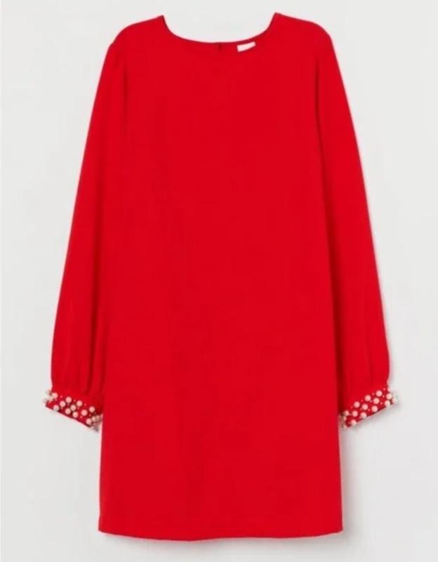 Яркое мини платье H&M с жемчужинами на рукавах. Розмір на бірці 34. Сзади застегивается на пуговицу. Крой трапецией.