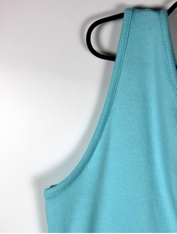 Голубой короткий сарафан на одно плечо, рубчик.Стан идеальный,размер л, мощна и на м.