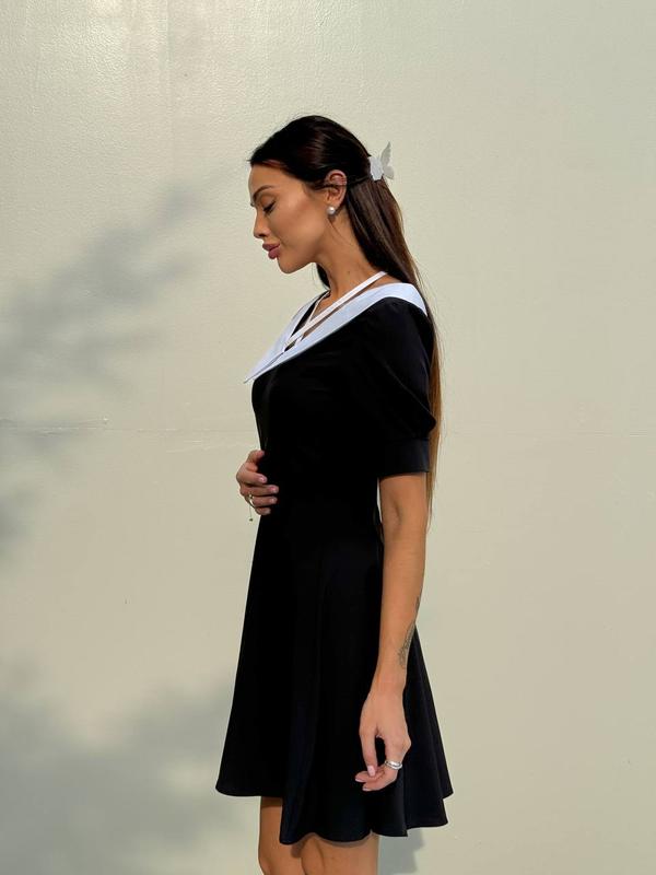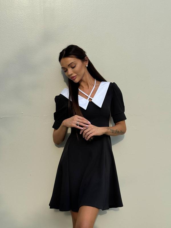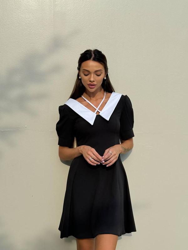 Стильна оригінальна сукня міні з білим коміром і короткими рукавами трендове плаття на дайвінгу