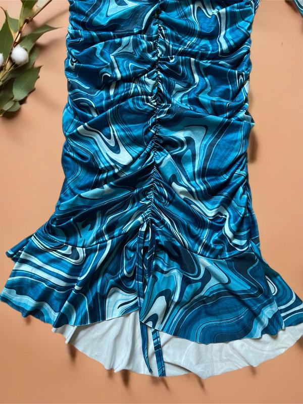 🌾 Платье слинкие с драпировкой в абстрактный принт PrettyLittleThing PLT