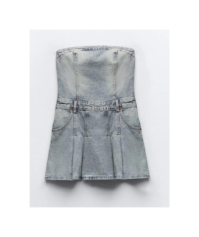Актуальное джинсовое платье мини, платье бандо, стильное, модное, трендовое
