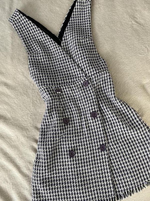 Платье жилет house brand в фиолетовую мелкую клетку. В хорошем состоянии, размер XS (может быть на маленькой S) Фиолетовые пуговицы. Есть подкладка
