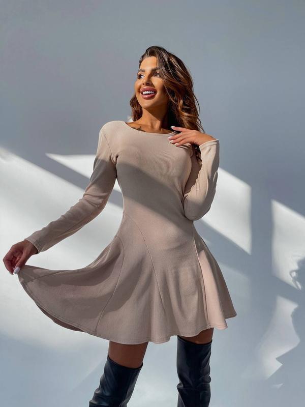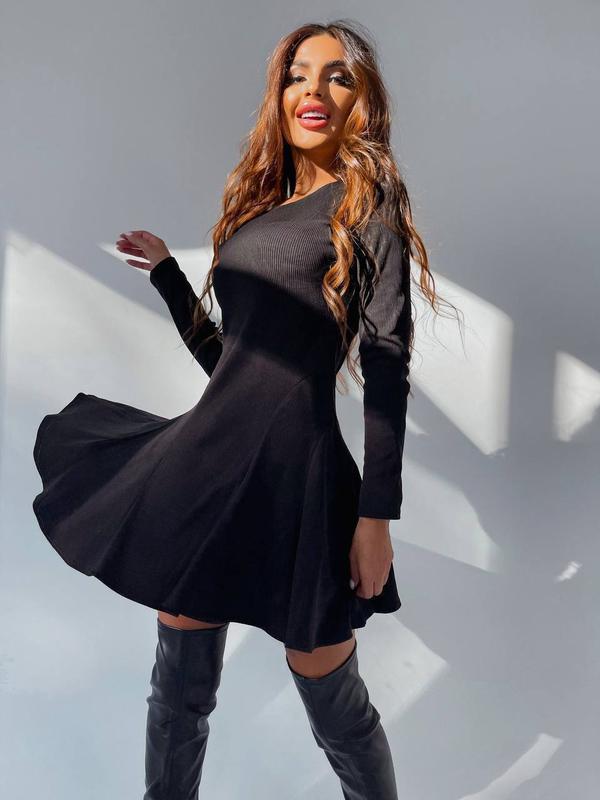 Платье мини короткая женская демисезонная теплая акрил рубчик вязкая с воротничком горловиной длинные рукава приталенная облегающая платье