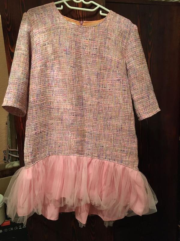 Прекрасное платье, твид, в розовых тонах!