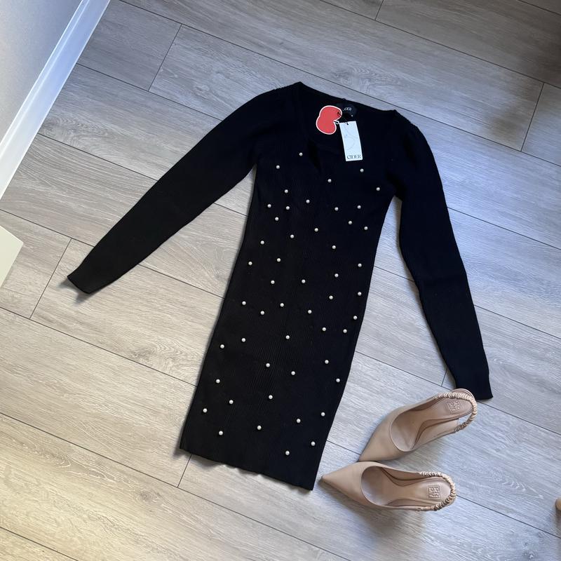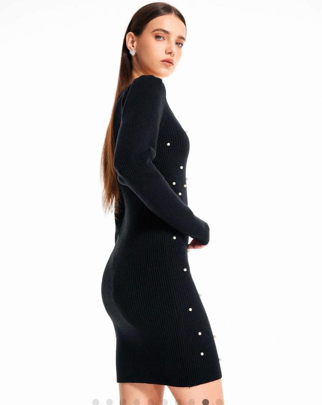 Насыщенный черный цвет, новое теплое платье в рубчикЭлегантная и женственнаяНа фото одета на С, тянется очень красиво даже на Л