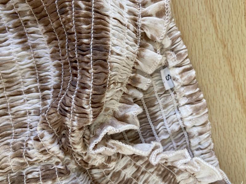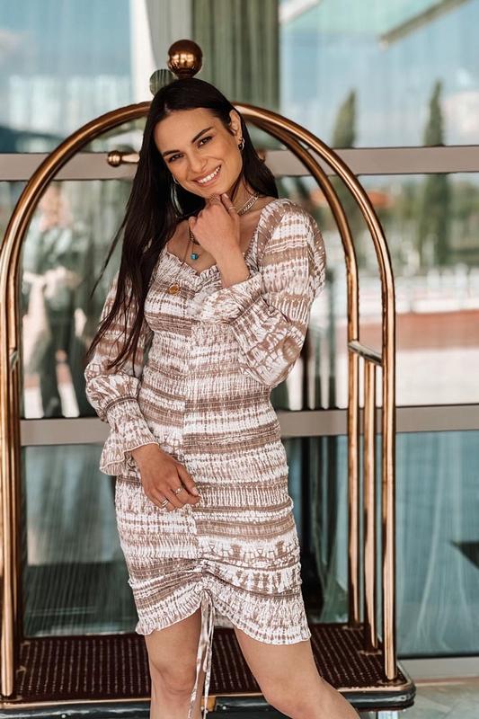 Бежевое короткое платье с длинными рукавами в рубчик
