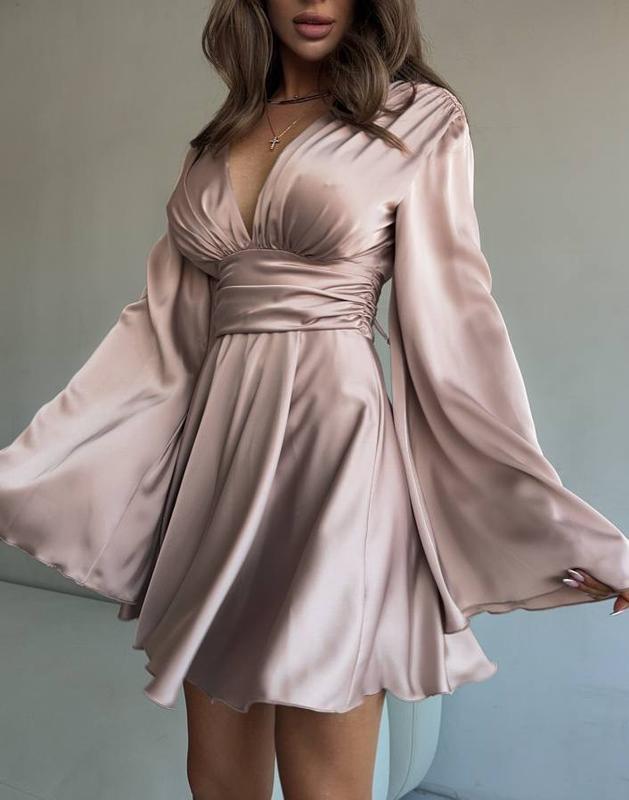 🔝Идеальное платье из атласной ткани с декольте и воздушными рукавами 😍 В этом платье ты почувствуешь себя принцессой💔Очень женственное и нежное♥️