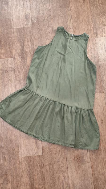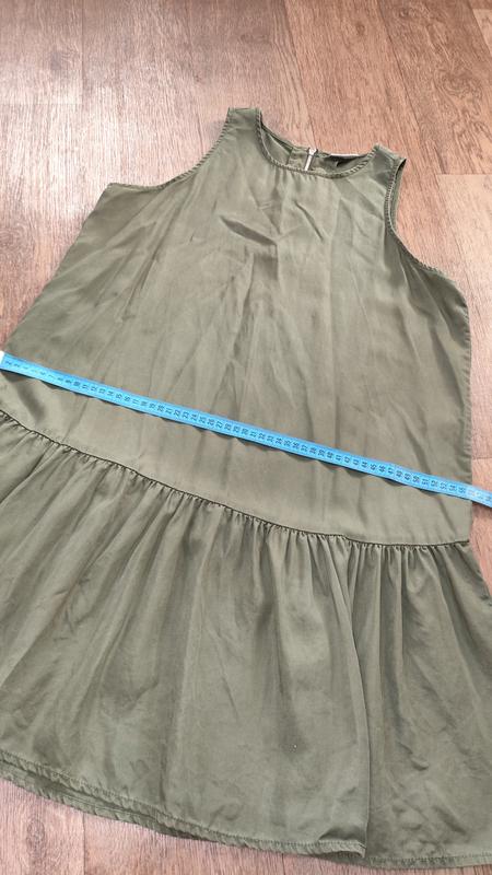 Платье цвета хакиткань как коттон, не тянетсясостояние идеально замеры есть на фотоподойдет на размер M-L