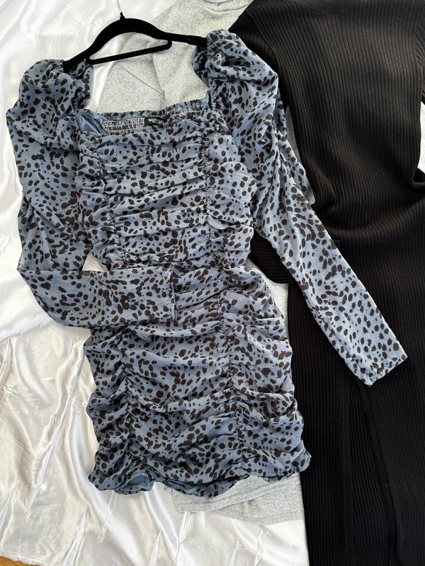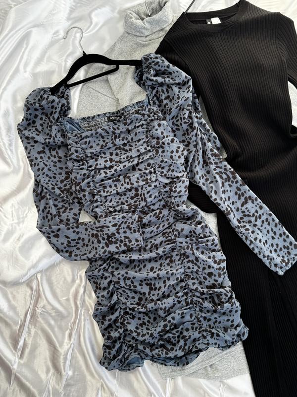Платье мини с длинными рукавами клеш с квадратным вырезом декольте короткое с разрезом по ножке платье приталенная трендовая стильная черная бежевая серая