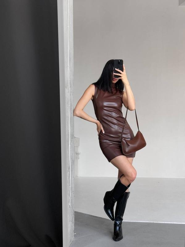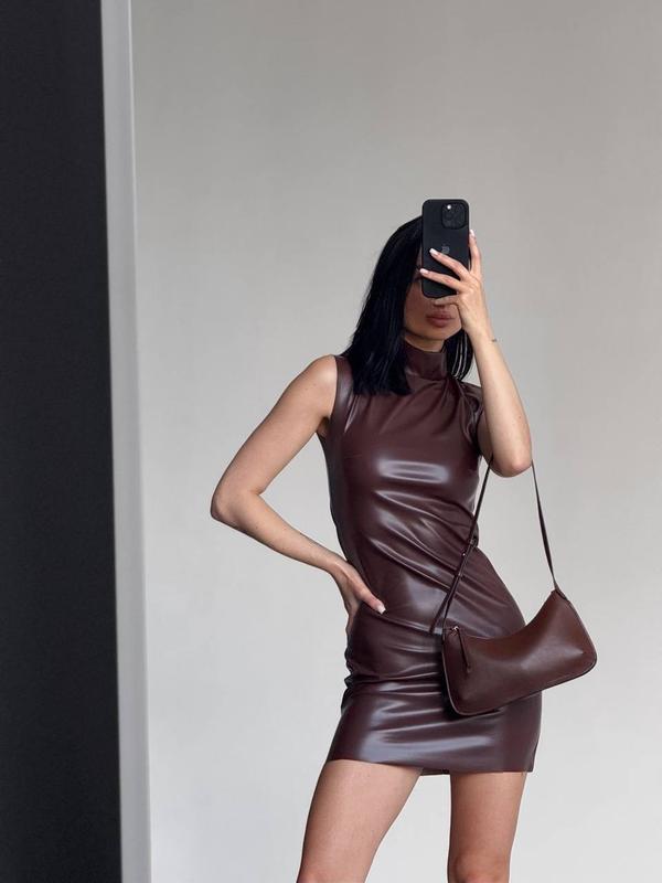 Невероятное платье мини из эко кожи, в трендовом цвете этой осени 🤎