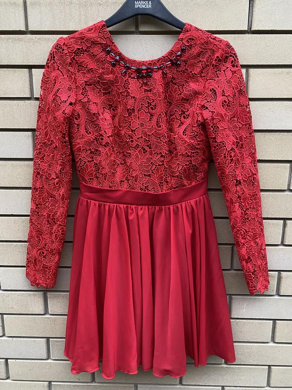 Праздничная короткая красная (цвет насыщенный фото не передает) платье с длинными рукавами