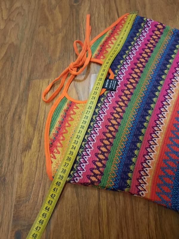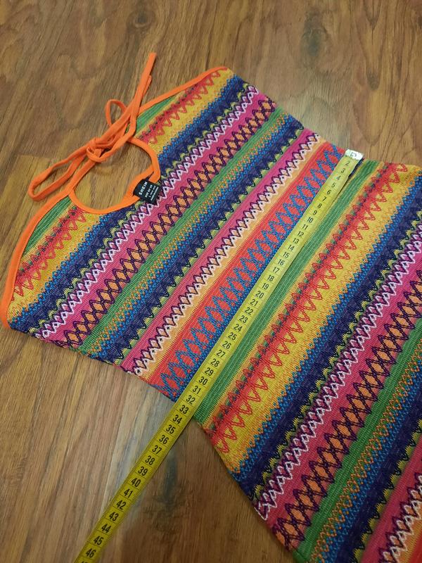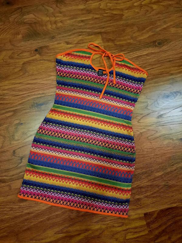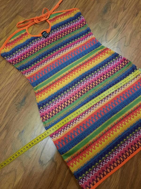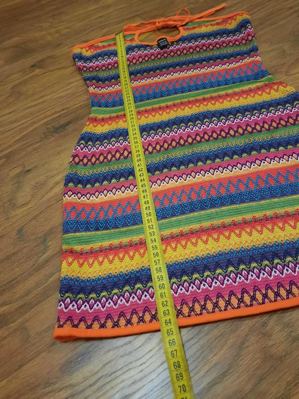 Яркое летнее открытое платье с абстрактным принцем разноцветными полосками, размер хс-с prettylittlething