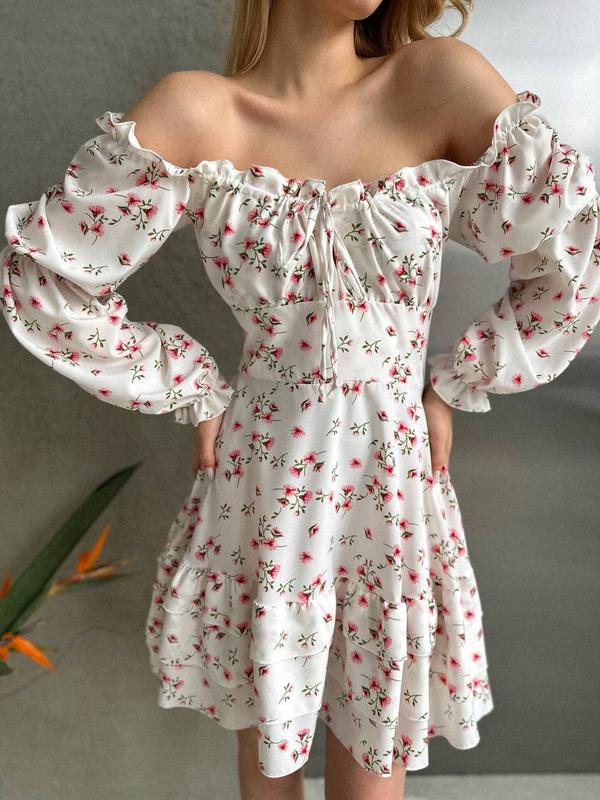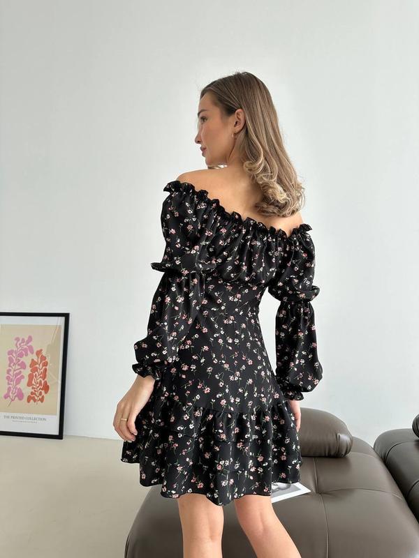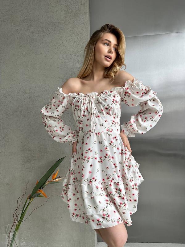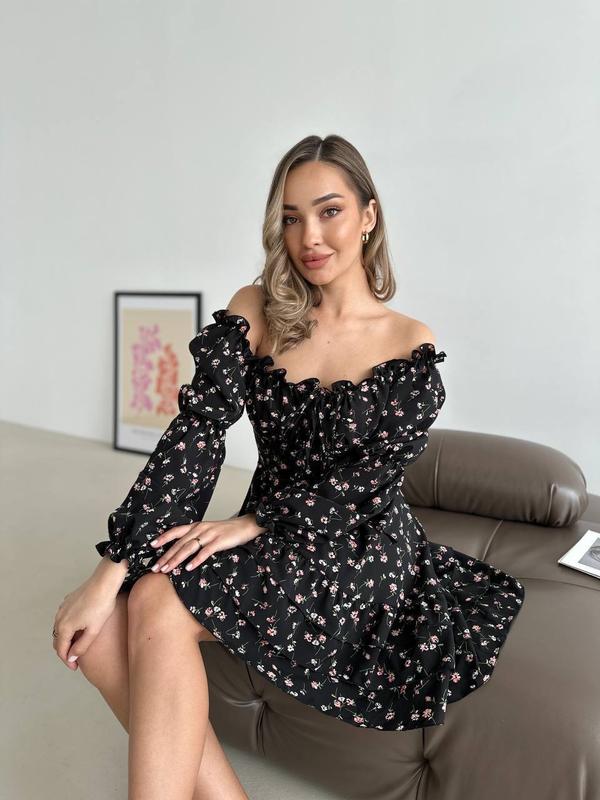 Мини платье в цветы платье мини в цветочный принт платье с пышной юбкой