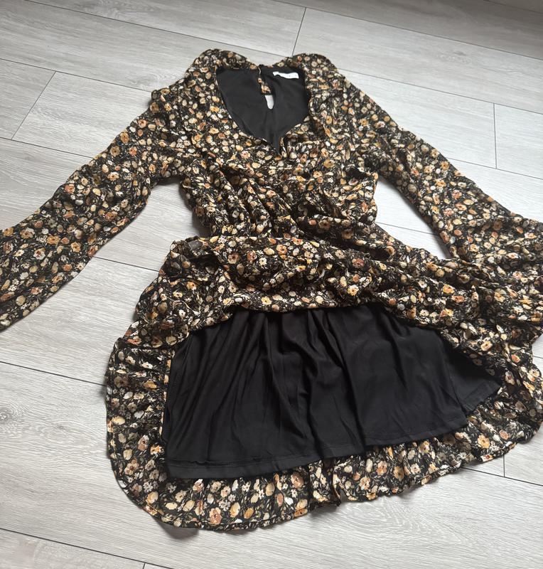 Классное платье, клеш. Вырез на запах, рюши по низуРомантичная, женственная, идеальна для весенних и летних вечеров или для фотосессииТалия на резинкеСвободный крой