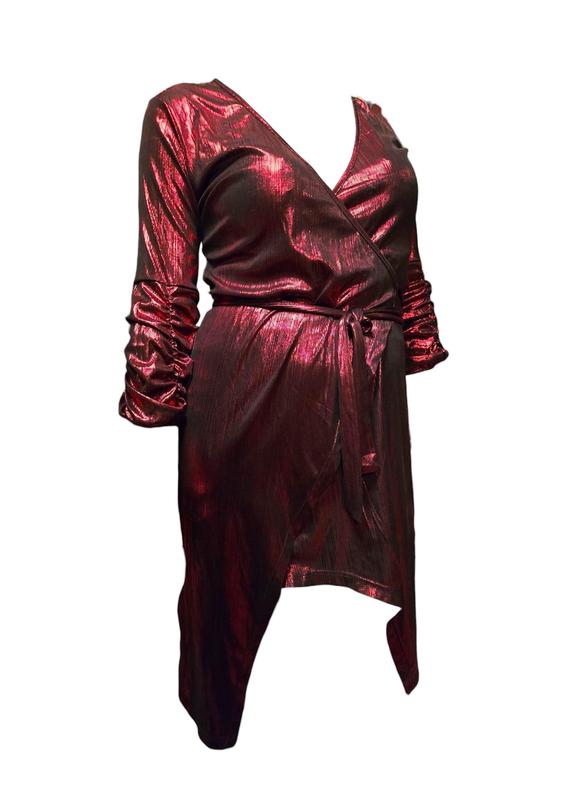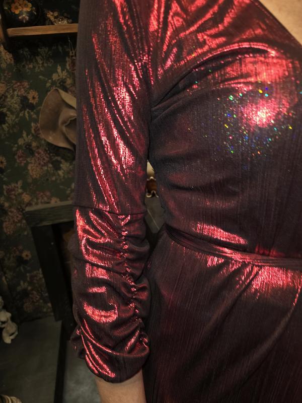 Платье на запах из жатой ткани с люрексом shein мини короткое асимметричное пояс