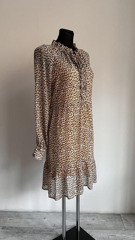 Шифоновое платье с принтомСтан - идеальныйРазмер СПолуобхват груди - 40 см Полуобхват талии - 36 смПолуобхват бедер - 45 смДлина рукава от горловины - 70 смДлина - 88 см