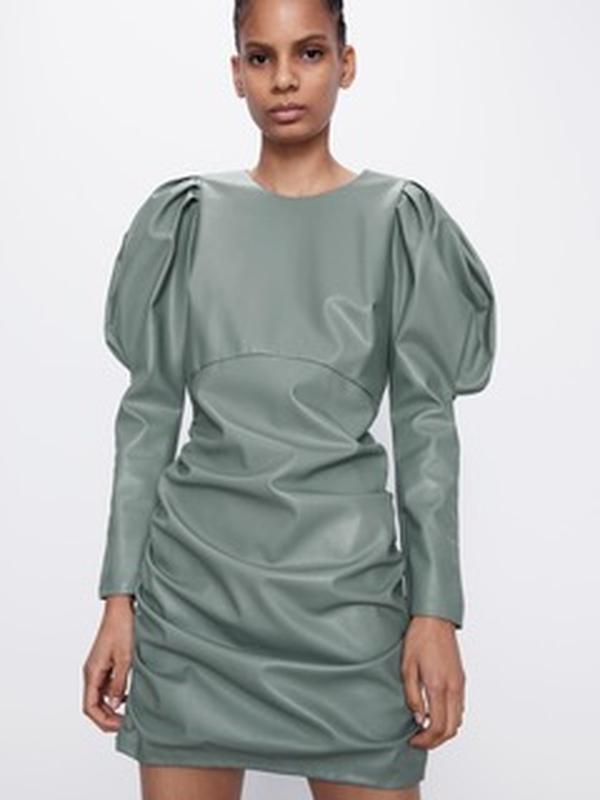 Платье из экокожи от Zara. Красивый серо-голубой цвет, качественный материал. Размер М. Одетое 2 раза, в идеальном состоянии.