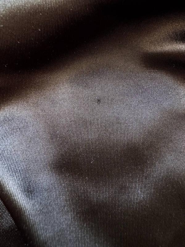 Имеет деклилька таких небольших точек (от липучки, которая зацепила ткань чуточку), но не бросается в глаза при носке, за счет складок на платье.