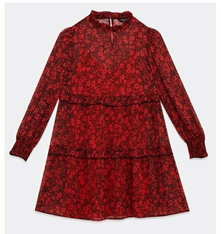 Шифоновое бордовое платье new look, платье бургунди в стиле ретро, р. 8