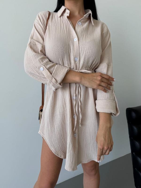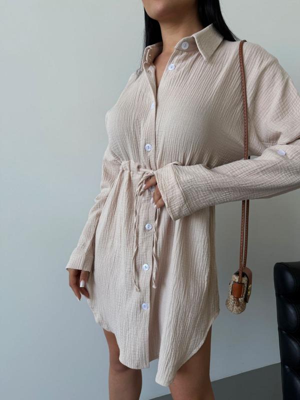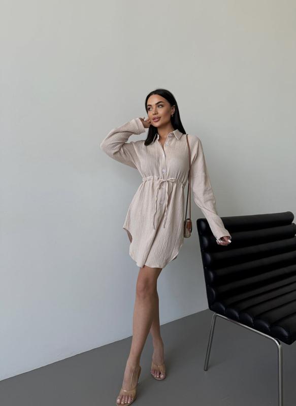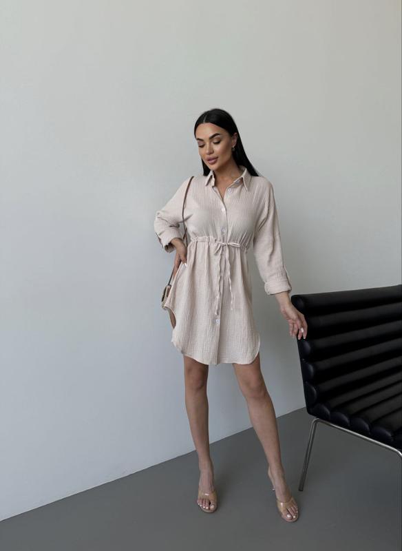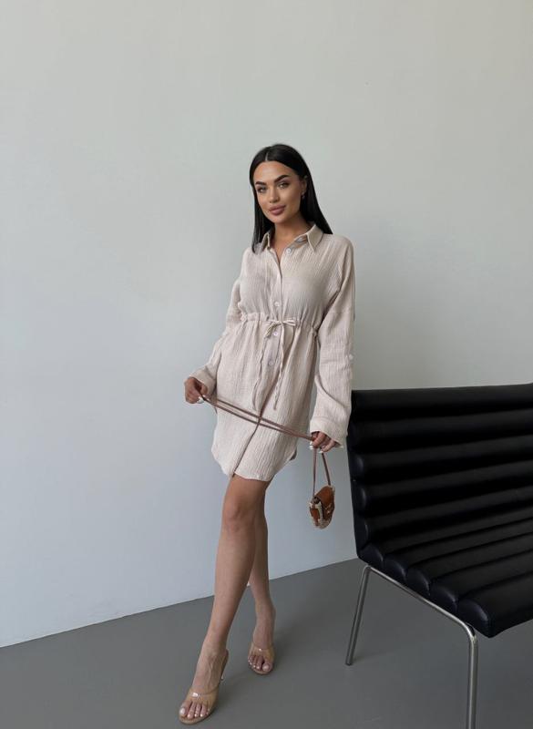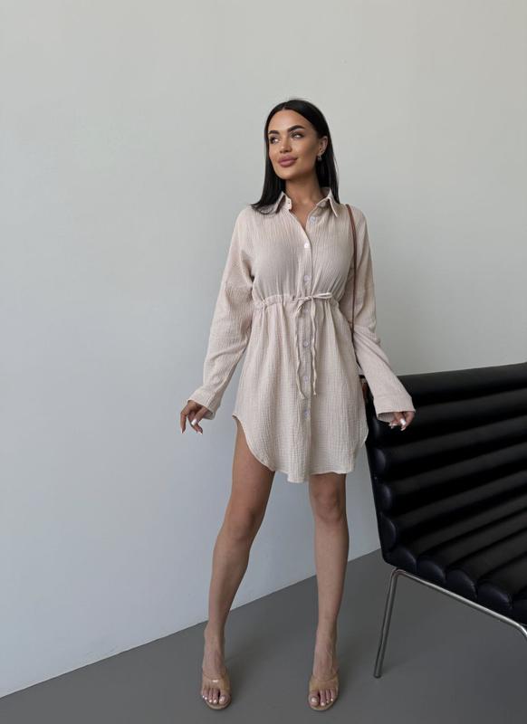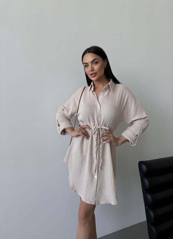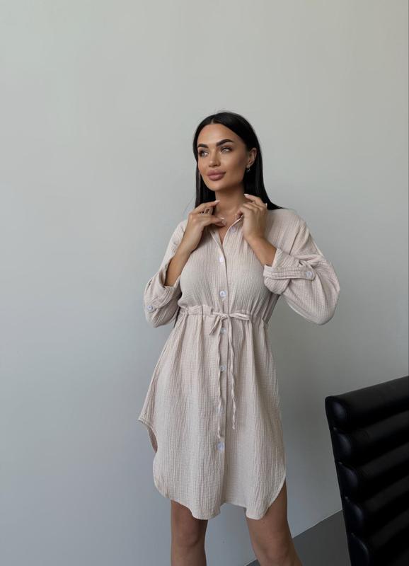 Легкое летнее муслиновое платье (платье-рубашка) короткое муслин с поясом 42-52