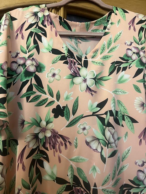 Плаття шовкове розкльошоне, перед коротший від заду, довжина переду 93, довжина заду 100, ПОГ 60, ПОБ вільний, але ширина до 140, рукав 23