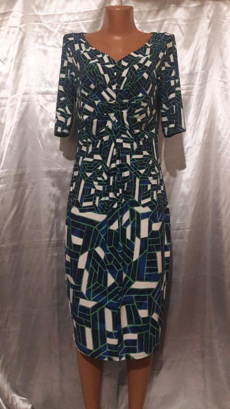 Модель садится полностью по фигуре и имеет сборку в области живота. Указан размер: 40 евро Плечи = 36 см ПОГ = 44 см + стрейч ПОТ = 39 см + стрейч ПОБ = 46 см + стрейч Длина по центру спинки = 101 см Длина рукава = 30 см Производитель: Marks & Spencer