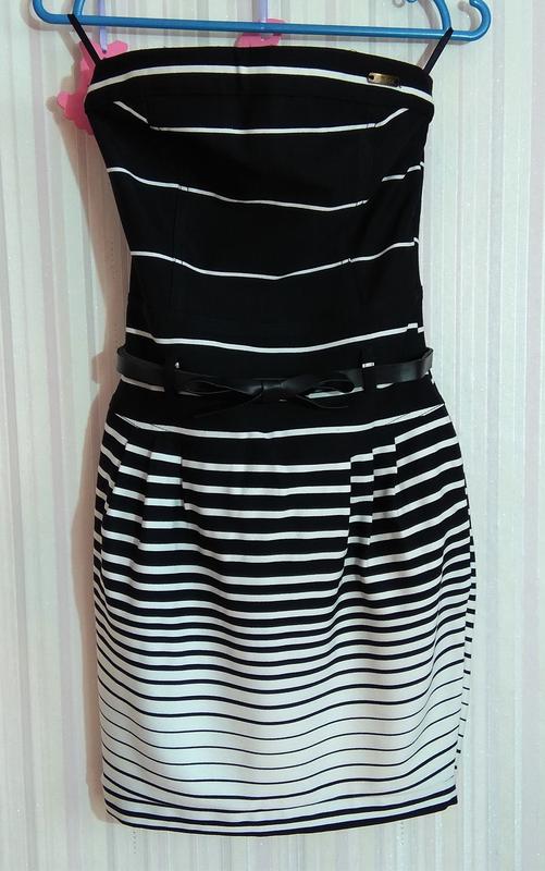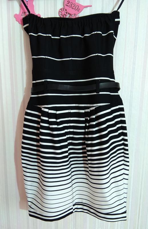 Стильное платье в полоску с поясом в размере М.