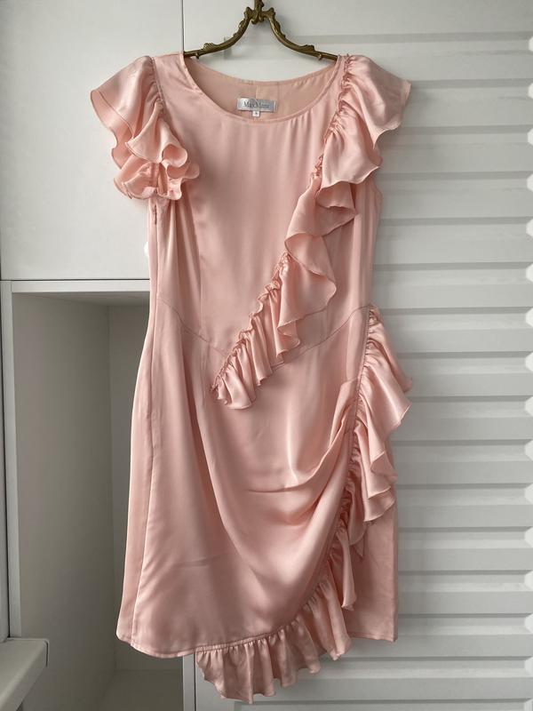 Красивое нежное и женственное платье светло-розового цвета с воланами. Состояние нового. Размер XS-S