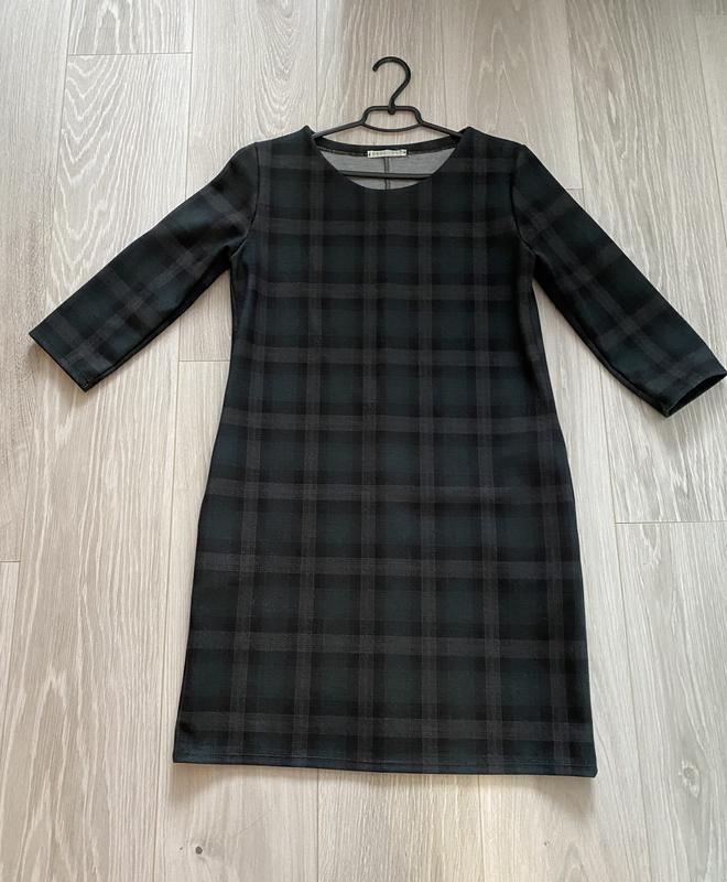 Женское платье зелёное в клеткуКарманы по бокам С размером ориентируйтесь по замерам. Длина рукава 44смДлина изделия 87см Приблизительно МОдето один раз