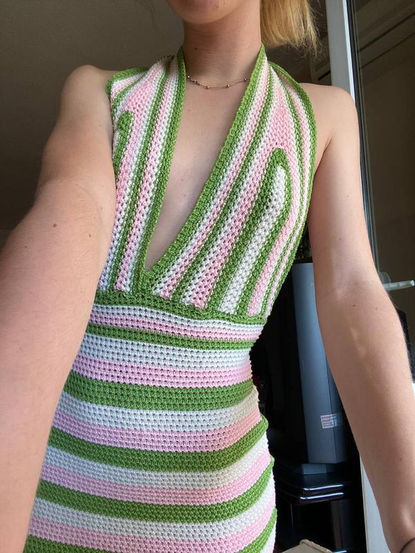 Красивое вязаное платье. Не просвеяивает. Замеры: грудь 66-84, длина юбки 44, длина с верхом 81 см. Платье с завязками, есть возможность самостоятельно регулировать длину.